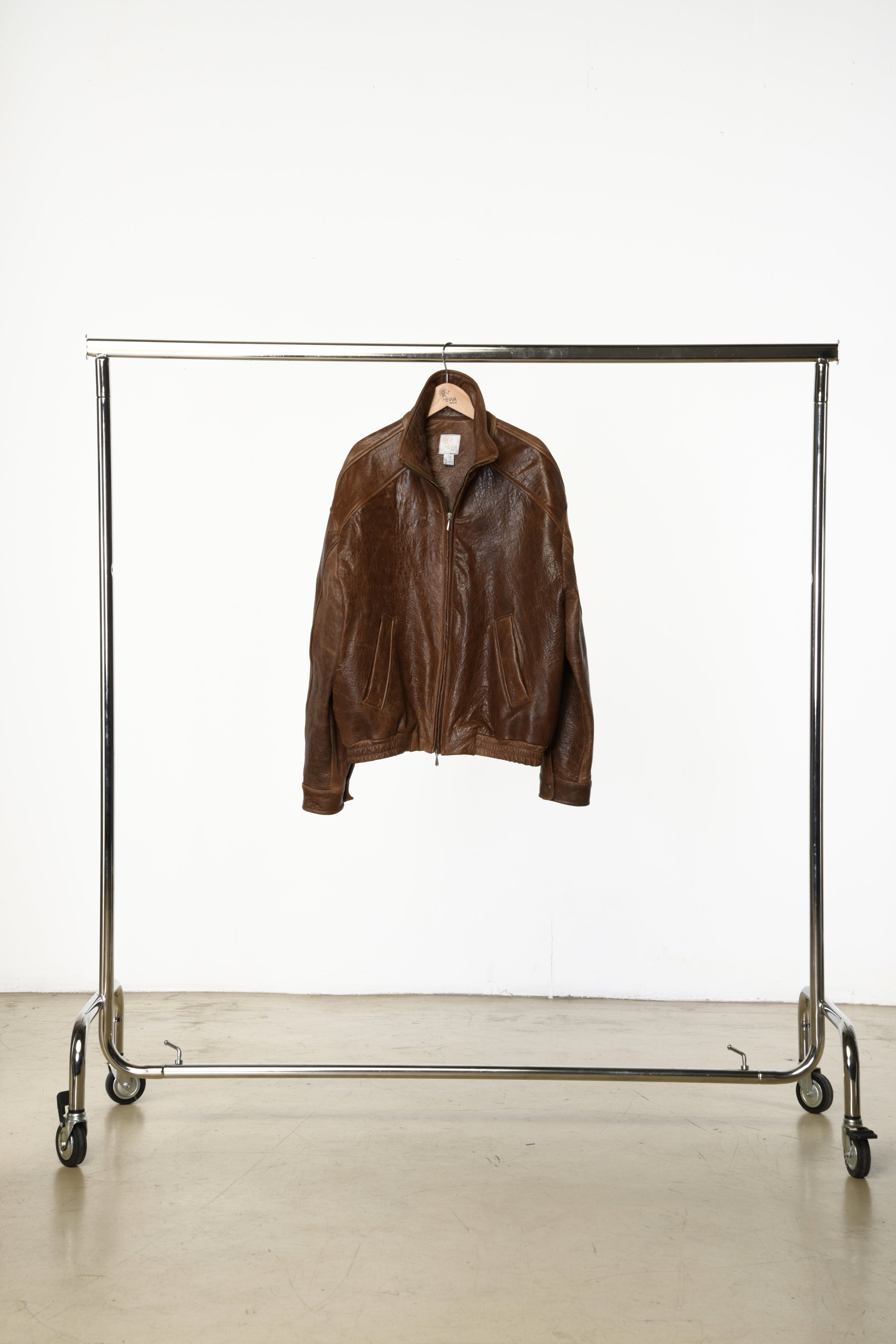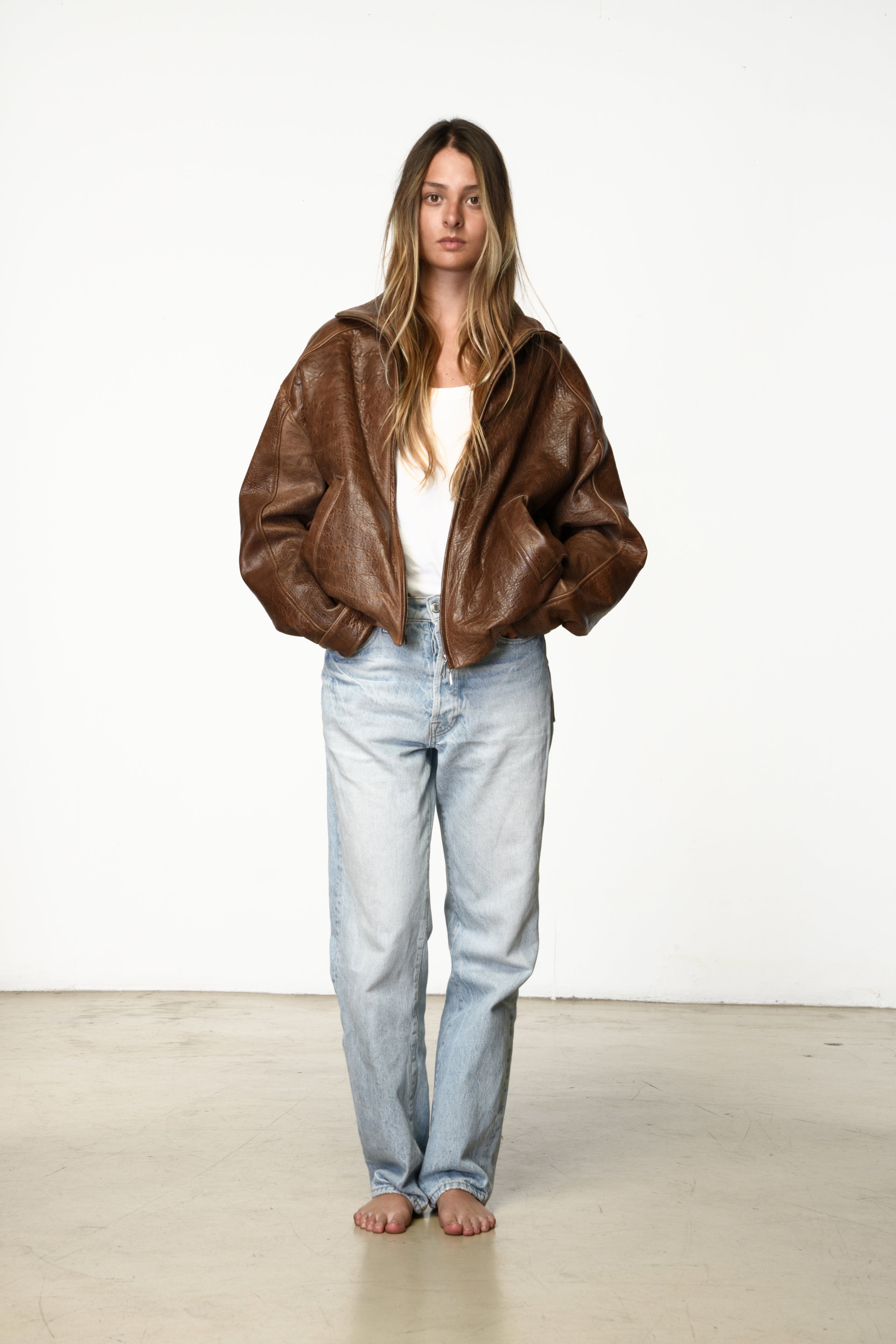 Iconic leather bomber with a relaxed fit. Edgy attitude meets refined allure.