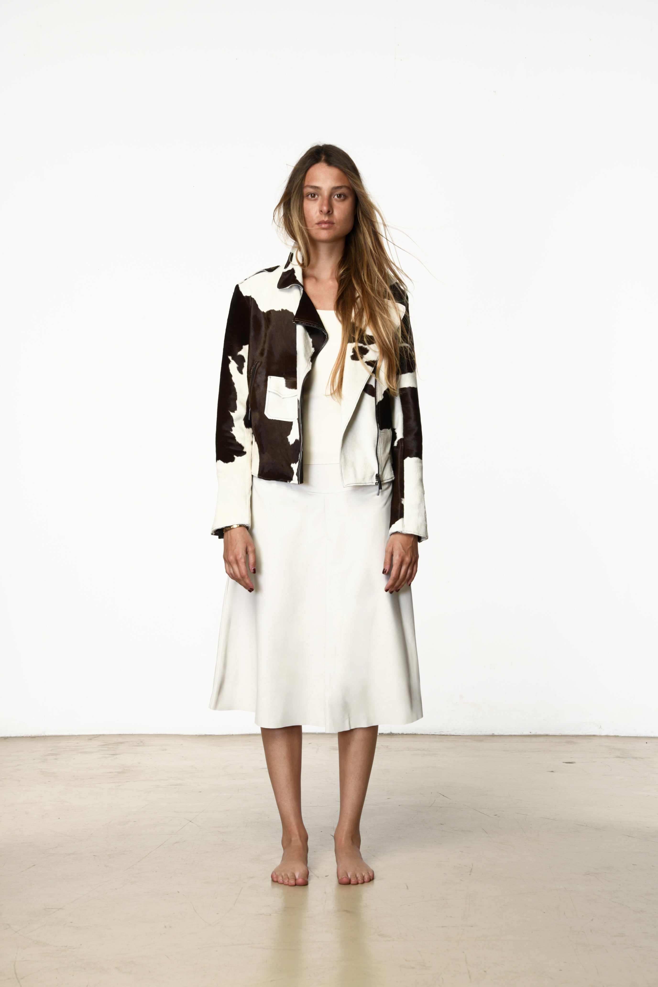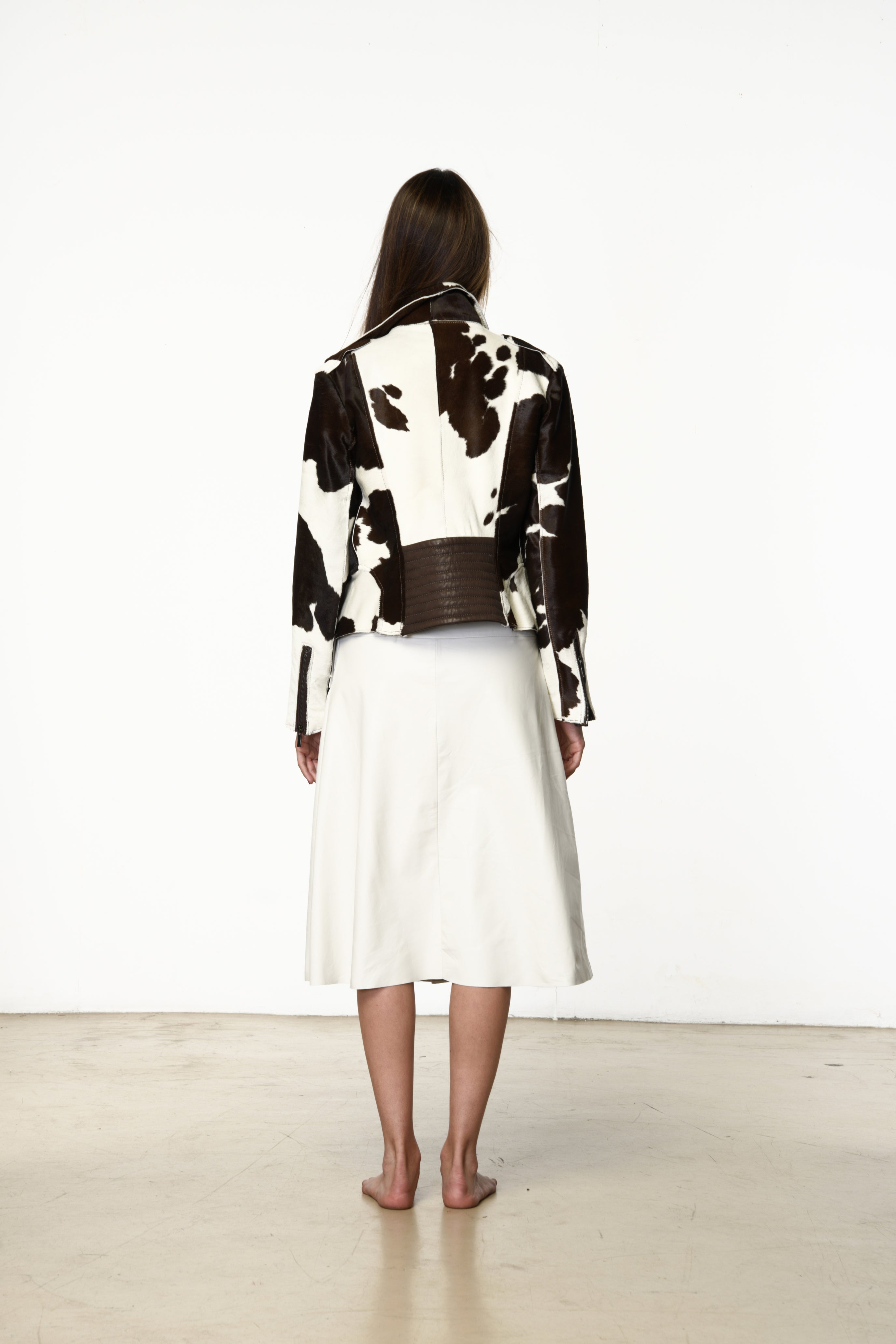Midi skirt in nappa leather with a flared silhouette. Essential lines meet a bold spirit.